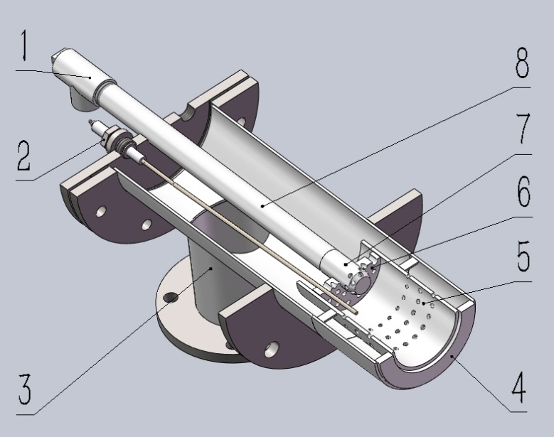 1、燃?xì)鈿んw 2、檢測電極 3、空氣殼體 4、擋環(huán) 5、風(fēng)筒 6、配風(fēng)盤 7、噴嘴 8、燃?xì)夤?/span>