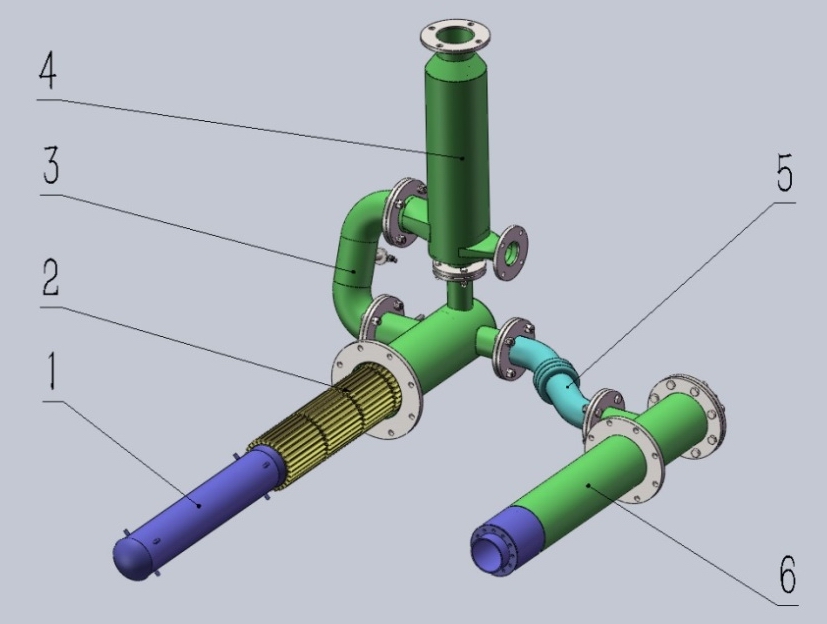 1、換熱管 2、射流換 3、煙氣連接件 4、換熱器 5、空氣連接管 6、主燒嘴