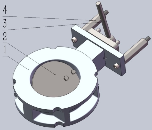 1、閥體 2、封板 3、旋轉軸手柄 4、支柱(安裝電動執行器)